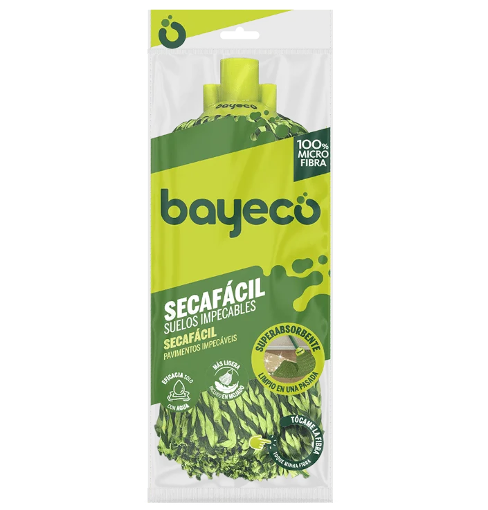 Bayeco Secafácil es una fregona 100% microfibra que lo deja todo limpio y seco en un pispás. Gran absorción y arrastre, es ligera incluso en mojado. Los suelos mojados se van a meter ¡en un buen fregao!